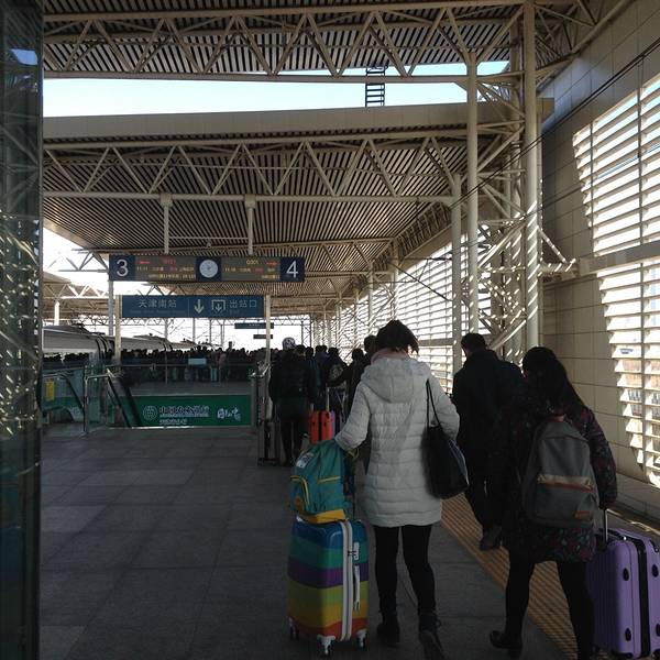 天津南站是比较新的高铁站,位于市区南部已经挺偏了,还好去年3号线接驳,这里是最南边一站。从这里出发去市中心营口道5元,约35分钟可达。附近公交有312,707等可以去王顶堤以及花苑,到水上公园也比较方便;如...天津南站是比较新的高铁站,位于市区南部已经挺偏了,还好去年3号线接驳,这里是最南边一站。从这里出发去市中心营口道5元,约35分钟可达。附近公交有312,707等可以去王顶堤以及花苑,到水上公园也比较方便;如果要去杨柳青,南站也是不错的选择。打车约30元可到,这里比较水墨中国风小镇感觉,空气也蛮好》》途径南站多是北京去沧州、济南高铁的经停站,所以如果长假买不到直达票,尝试买“节节票”,说不定也可以助你回家 - 天津天气比青岛炎热,穿短袖即可。天津站感觉没有青岛北站占地大、豪华。不用动脑子,跟着走就行