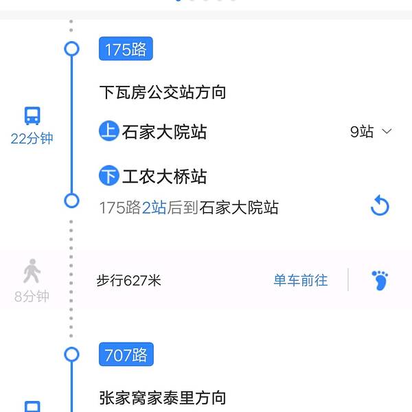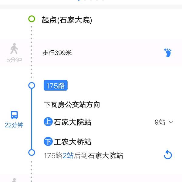 票价:2元/人街景车票2元/人因为怕这几个地方相隔较远,导车不便,所以定的是22点30分左右的高铁🚄票,时间留出了很多富裕!...175路:石家大院站——工农大桥站,共9站