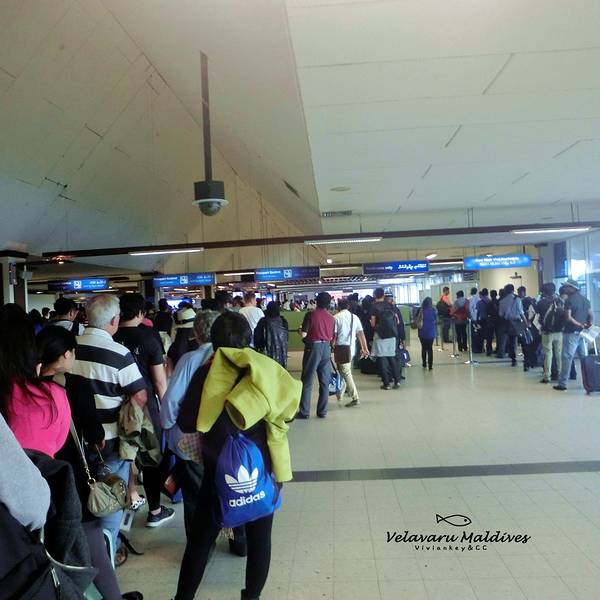到达马累后之后就到达了这个机场~ 进出马累都是从这个机场的~ 机场不是很大,在最边上是一些餐厅饮食店,蛮多家都是连在一起的~ 然后还有二排窗口,是给各个游客办理登岛手续的,不同的岛不同的窗口~ 出了机场就有不少小黑举着酒店的牌子,是接应各个酒店和岛的工作人员~ 离开马累的时候,办理登机牌真心的慢,这个效果和国内真的没法比~