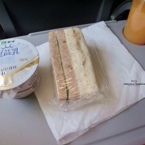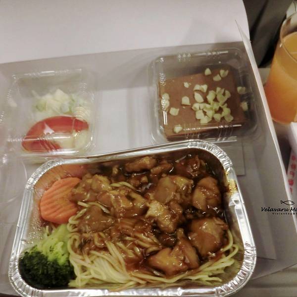 我有一个特别大的优点就是不认床,在哪儿都能睡得很欢,这个优点同样适用于灰机上。7小时飞行时间以上的航班都会有2次餐食,睡了没多久空乘人员就来发入境单和餐食了,入境单的填写我之前已经在游记里说明过了噢~餐食的话饮料有很多选择,主食可以选择面或米饭,再加一份蔬菜沙拉和点心。