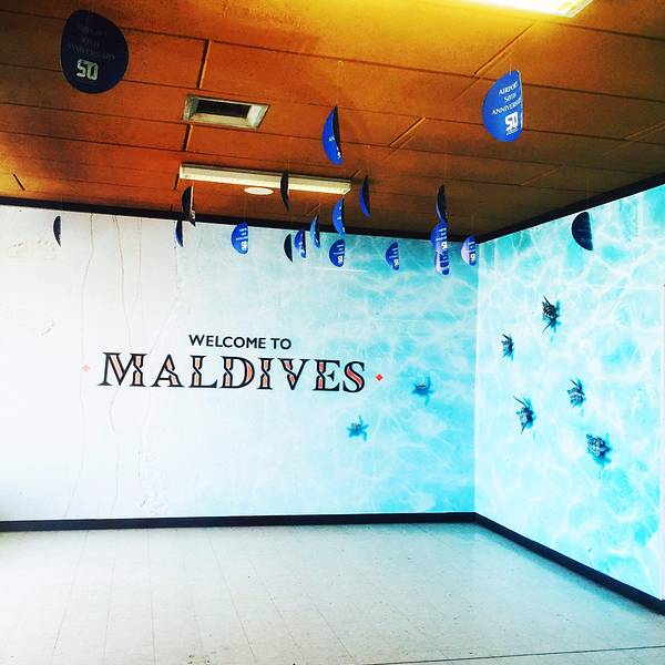 和老婆从上海直飞到马累,到达了易卜拉欣纳西尔国际机场。 这个机场不是很大的,有些小餐饮品牌,主要快餐为主。 环境还挺干净的吧。 也是国内内陆飞机和水上飞机的中转站机场,水上飞机的接待处也在这。 机场虽小,五脏俱全啊。 特别佩服这里的服务人员,基本上找到第一个接机的小黑后,也算是一站式服务了,都有专人接送的中转的。