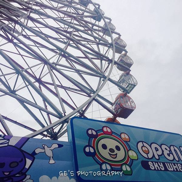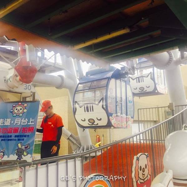 到了民宿放下行李我们又出发啦~民宿门口转弯就是著名的美丽岛捷运站,确实非常非常漂亮。不知怎么,高雄的人特别的少,有时候捷运站完全没有人,和我来之前想象的完全不一样...我们先到三多商圈,逛了逛新光三越,吃了顿简单日餐午饭。然后马上转战梦时代购物中心。梦时代离市区远,下了捷运还要走15分钟左右,那天一直在下小雨,所以也没怎么拍照。梦时代楼上有个著名的摩天轮:高雄之眼,台剧痞子英雄在这边取景。我们那天去恰巧有活动,买票的时候才知道可以免费乘摩天轮。整个摩天轮都画满卡通,特别Q。