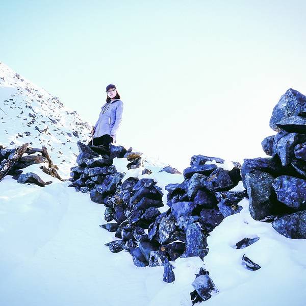 再向前一步就是悬崖,我只好坐在雪坡上欣赏神女,不敢站立。那样独特角度的缅茨姆,果真现身攀到山头的顶端,时间已经超过了三点。那样独特角度的缅茨姆,果真现身。山头风大,我脚步难以站稳,更不敢移动。再向前一步就是悬崖,我只好坐在雪坡上欣赏神女,不敢站立。
