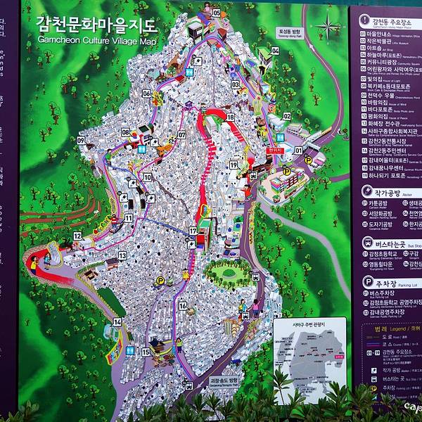 金骆驼 为了保持这一特色,充分发挥文化村历史价值,艺术家们和当地居民共同携手打造了这些村庄艺术,因此才...甘川洞文化艺术村被称作为“亚洲的圣托里尼”,村子在釜山市的一座山上,当时我们从太宗台搭乘30路公交车,然后到影岛大桥的下一个站下车,换乘1-1,2,2-1至甘川文化村。上山的路蜿蜒曲折,所以一定要坐好,避免跌...甘川洞文化艺术村被称作为“亚洲的圣托里尼”,村子在釜山市的一座山上,当时我们从太宗台搭乘30路公交车,然后到影岛大桥的下一个站下车,换乘1-1,2,2-1至甘川文化村。上山的路蜿蜒曲折,所以一定要坐好,避免跌倒。 展开
