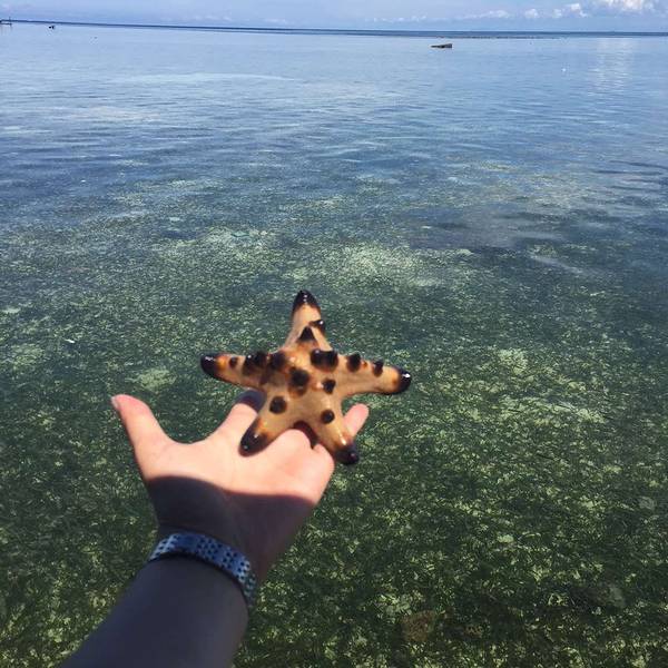 ...潜水最喜欢听的声音,Tom的叮叮棒,第一个小惊喜就是一条大大的拿破仑,再然后就是自由自在的海龟岛上的第二天依然还是蒙蒙细雨,小区道路沿途都是横行的非洲大蜗牛。充满期待的除了早餐还有今天的天气。有了烤面包和黄油对 我来说就是完美的早餐,木瓜是相当好吃,煎蛋都是双蛋。阴沉的天气实在有点扫兴,问了...岛上的第二天依然还是蒙蒙细雨,小区道路沿途都是横行的非洲大蜗牛。充满期待的除了早餐还有今天的天气。有了烤面包和黄油对 我来说就是完美的早餐,木瓜是相当好吃,煎蛋都是双蛋。阴沉的天气实在有点扫兴,问了潜店的工作人员,估计下午雨就会停止,但参加岛上的潜水行程前,必须先参加一次潜店的check dive,目的是检查潜水员掌握的技能,方便后续行程安排。吃完早餐已经临近中午,看着已经有人冒着小雨开始浮潜了。气温合适,风浪小了。我们也迫不及待的换上衣服,前往拖尾沙滩那边。不得不说马达京的浮潜资源实在太棒了,浅滩就有大群的珊瑚,小丑鱼弯腰就能在水下清晰的看见,天然水族箱。大家玩得险些错过午餐时间。