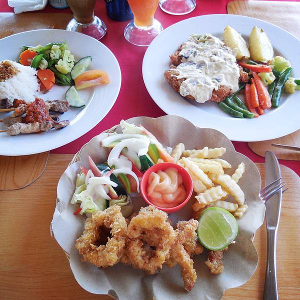 推荐餐厅1. WARE观景餐厅★★★★,从码头这边沿海边走个小台阶,上到观景小路上的第一家餐厅。就餐地点在海边的一个观景台上,环境一极棒,菜品不错,价格合理。2. Lembonqan Reef观景餐厅★★★★★,从WARE餐厅继续向前100米左右即到,点餐环境和菜品卖像更讲究。推荐酒吧:Coconut Beach Resort(椰子海滩假日酒店) 观景酒吧★★★★★,从Lembonqan Reef餐厅再向前就是。非常浪漫优雅的地方,每晚有小乐队演奏,到桌边演奏时可适当给点小费,两三美元左右。蓝梦岛住上两天时间合适;岛上的吃住行玩儿都很方便,不必为此担心,有攻略的确是有些误导大家,我来之前也有顾虑。现在了解的情况就如此,除不能取钱外一切没问题,来之前注意带上足够的现金就OK了。
