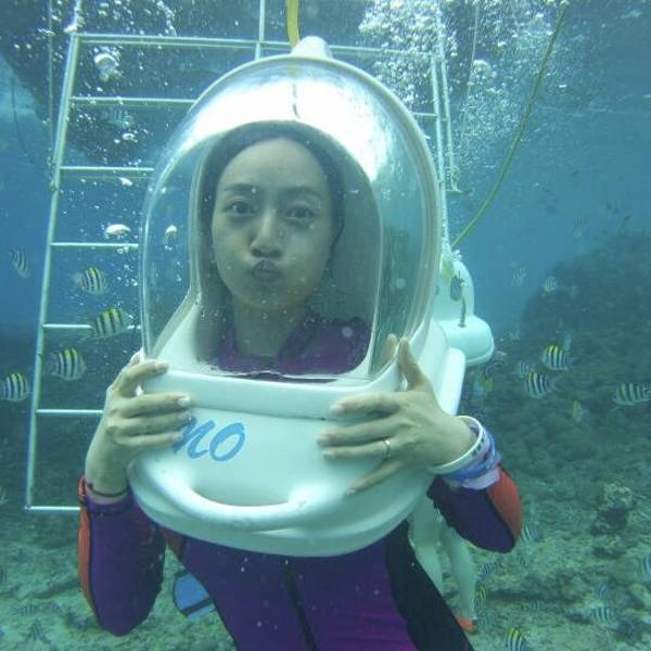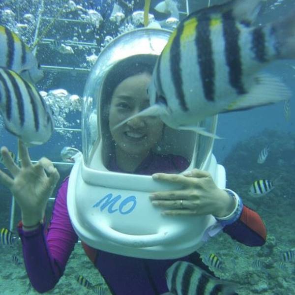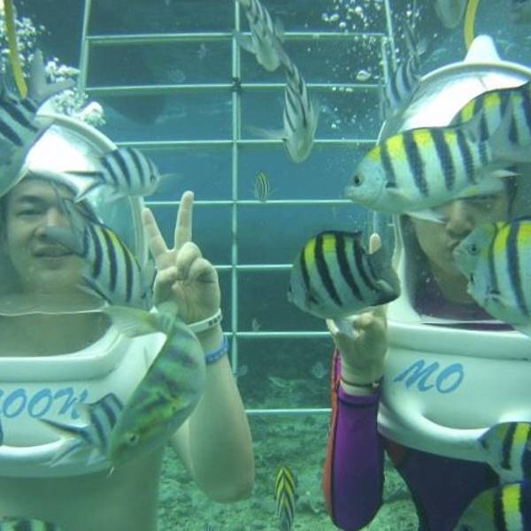 海底漫步就是大家上到另外一个专门的船上,然后排队带上头罩,从一个固定的扶梯爬下海底,大概4-5米深,海底超多小丑鱼,特别漂亮。
