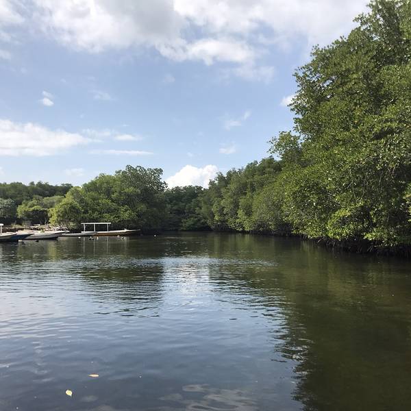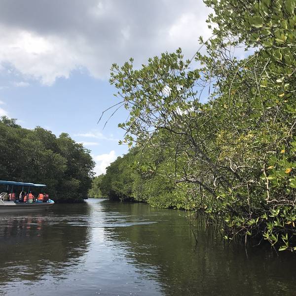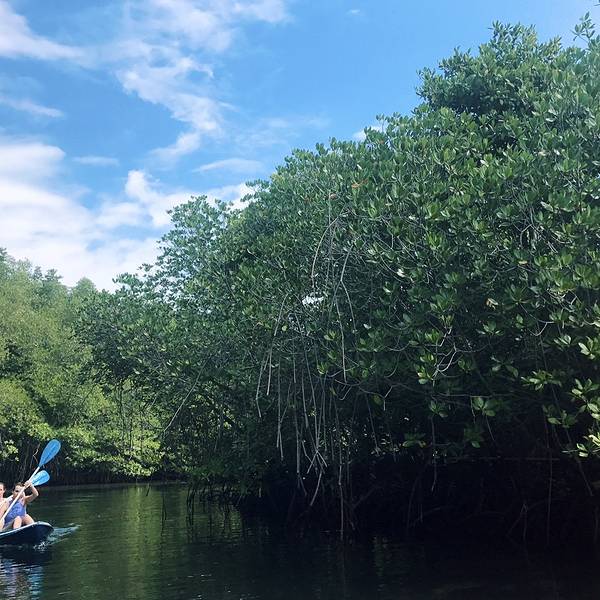 但是下去工作人员拍了几张照就让下去了,太敷衍了!这个头罩超级重,一带上就有种压迫感。海上项目结束,乘船经过红树林回原来换衣服的地方。老外们喜欢自己租一个小船在红树林划,我和老公都说他们好大胆,什么安全措施都没有。