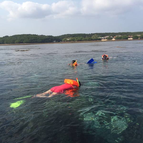 这其中最难忘的项目便是浮潜!头一埋在水里,瞬间你就到了一个巨大的热带鱼缸,这个形容绝不为过,定会让你兴奋得无与伦比!关于巴厘岛-蓝梦岛之间的交通,是包车司机帮我们联系了快艇公司,45万往返,包接送。快艇半小时就到,船工会一直帮助将行李送到你的酒店。