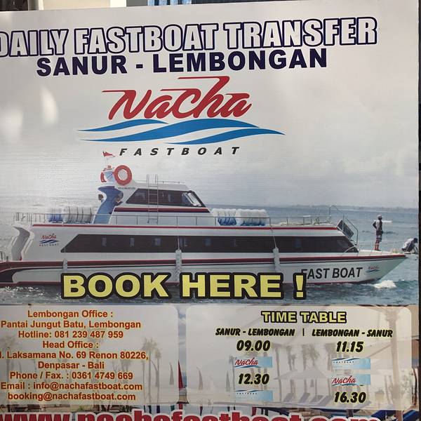 在巴厘岛萨努尔Sanur搭乘Perama 公司的交通船或者居民船,前者单程70000RP,上午10点左右出发,后者40000RP,上午9点左右开船,用时1小时左右;附近有售票点;可以于去的时候询问回程情况。