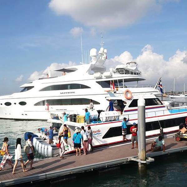 司机把我们送到码头,因为我和老公是带了行李上车的,出发是乌布,回去是去库塔,所以我们和司机提前沟通好了,回来他在码头的哪个停车地点等我们,我们继续坐他的车回库塔,我们也不需要搬行李了。在码头出发前,工作人员给每个人发了手环。
