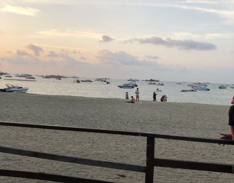 算是人比较少的一处海滩了,只有陆陆续续的几艘小游艇载着游客来玩,傍晚的时候还挺漂亮的,找一个比较安静的角落欣赏一场日落挺舒服的。