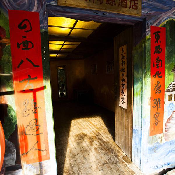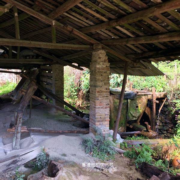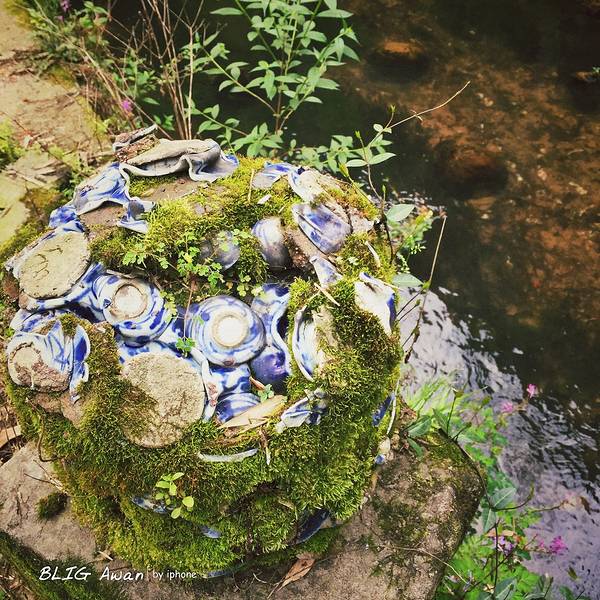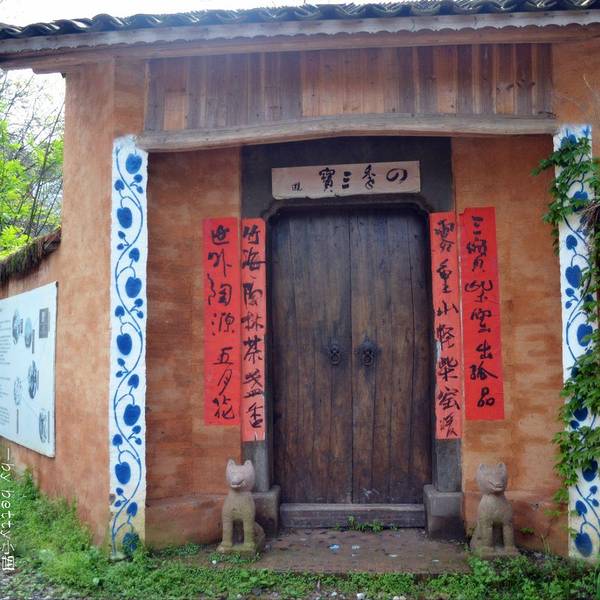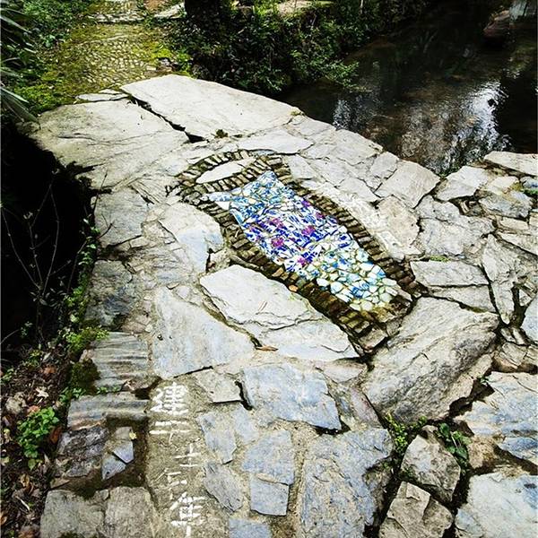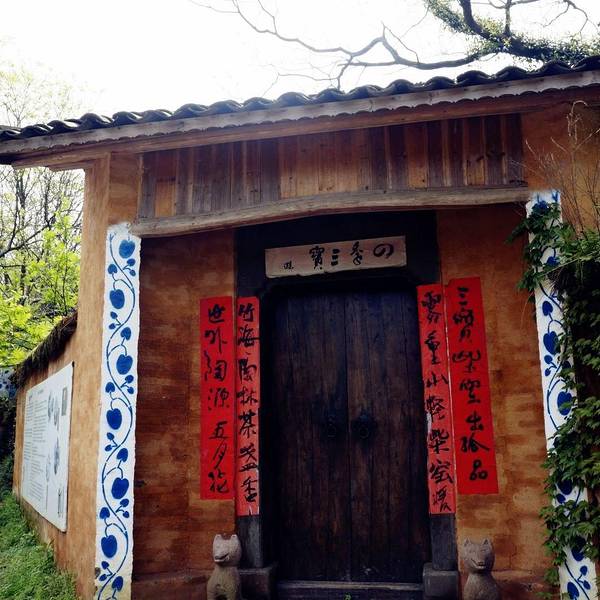 4.景点整体感觉:整个村子看似普通的很旧的农家小院,进入门内是一个陶泥标志物,里面嵌了很多瓷片、陶艺作品,院子里有从外面引入的小溪,水清见底,躺着的瓷碗、瓷片,有的掩埋了一半在泥里,古老的木制农具和当地的日常用品静静地待在一边,原木的门上贴着的大红春联。原木的长凉亭,原木的农家的米桶是椅子。它随意、简单、毫无章法、却野趣天成。