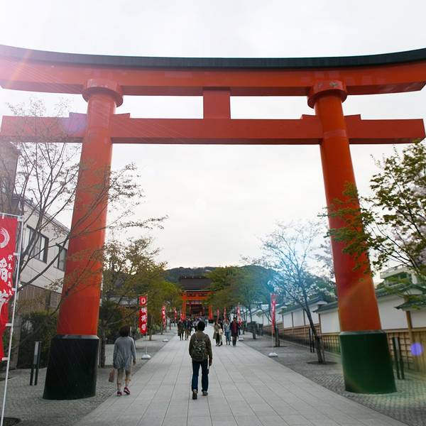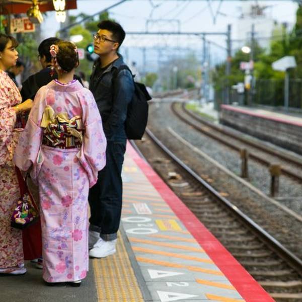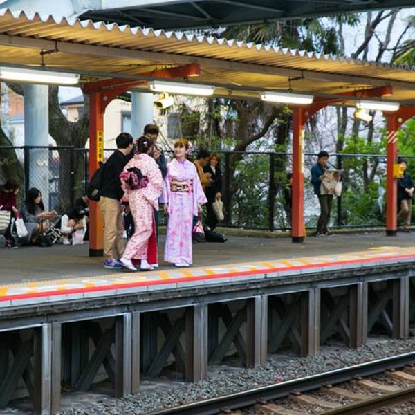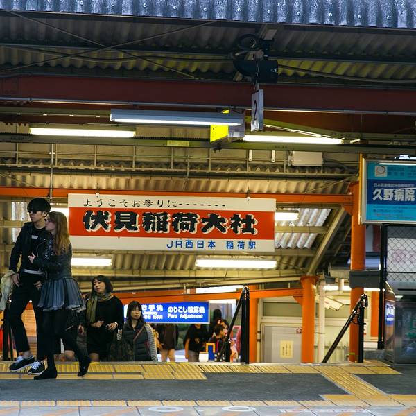 从上一站到大社,大概花了几百的打的费,不过从大社回到火车站确实异常的方便。出大门后,马路对面就是JR火车站,买一张去京都火车站的车票。便可去月台等火车。火车间隔也很短,自己觉得更像做地铁。10分钟左右...从上一站到大社,大概花了几百的打的费,不过从大社回到火车站确实异常的方便。出大门后,马路对面就是JR火车站,买一张去京都火车站的车票。便可去月台等火车。火车间隔也很短,自己觉得更像做地铁。10分钟左右就到京都站了。在稻荷车站看到一张自己非常喜欢的海报,整个风格简直就是小时候的日剧。在伏见稻荷大社,还能看到夕阳的余晖,等回到京都车站,已然入夜。
