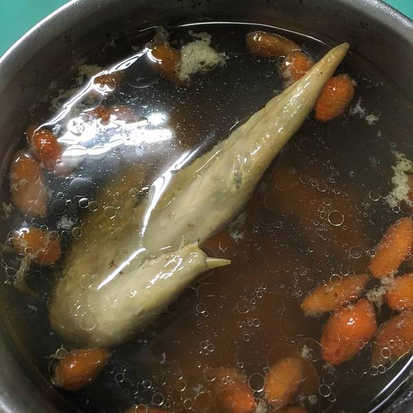 阿嬷娴熟地拉开推车的盖子,在碗里挖出 一块芋头,又拿出两个瓶子往里面倒了些汤汁。