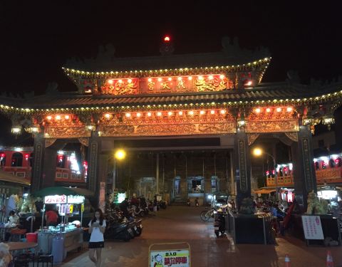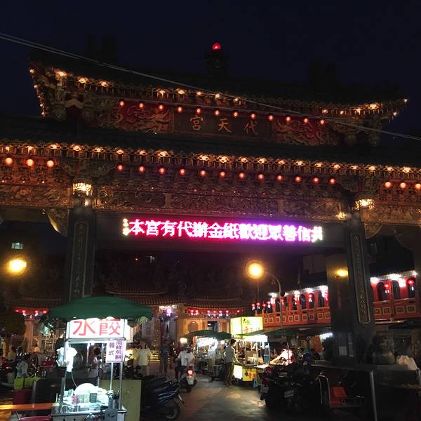 这裡就是代天宫,晚上这个广场会有很多小吃摆摊这裡就是代天宫,晚上这个广场会有很多小吃摆摊。