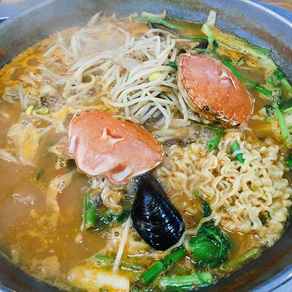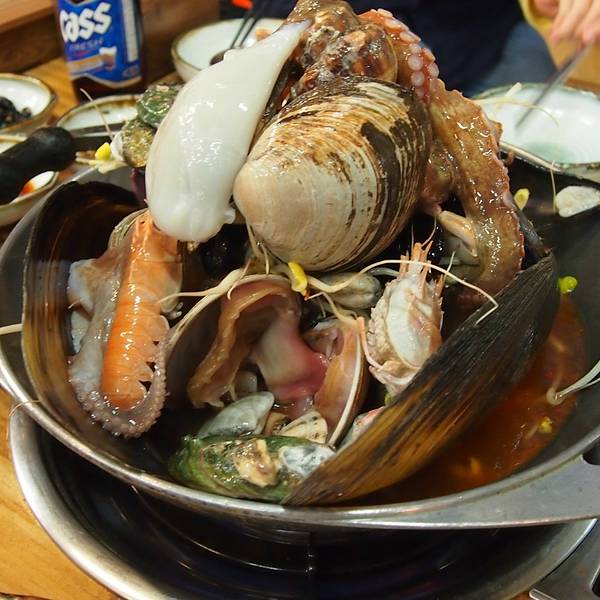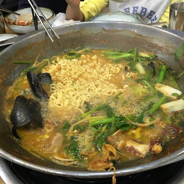 这家可以说众所周知了,搜济州岛美食、刷游记都会经常出现;材料很足,比想象中大锅,我们五个人点了一个中锅差不多,看着一锅生海鲜感觉挺新鲜的,味道个人感觉似乎没有评价这么高吧!总的感觉还不错。
