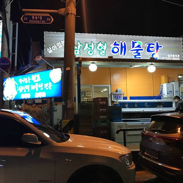 三姓穴海鲜汤,是济州岛的一家老店,来济州岛之前不止一个朋友推荐过。于是这次借着机会,也打算来尝尝鲜。济州岛不大,而这家店位于距离机场不太远的地方,很多人会在回国之前来此品尝一番。三姓穴海鲜汤的具体位置并不是很清楚,只是知道大概在济州特别自治道厅南侧,好在有google地图全程帮助导航。由于是晚上打算去吃,车也不算好打。看了看导航大约2km左右的步行距离,于是任性的打算步行。抵达店里时,门口已经有了不少的客人在排位。店主会询问用餐人数,然后帮忙排个号给客人,之后就坐在店门口的长凳子上等待便是。好在等待的时间并不太长,大约20分钟后,我们被告知可以进入用餐。进店之后,需要把鞋子脱下来放置在店内的鞋柜里面,然后方可前往座位。为了保证食材新鲜以及店内人流量可控,这家海鲜汤晚上8店以后就不能点餐了。海鲜锅从小、中、大、特大份均有提供,价位依次从50000韩元上升至80000韩元,一个档次增加10000。除此之外还有鲍鱼砂锅、海鲜砂锅、鲍鱼粥等供客人选择,价格为10000-15000不等,当然还有米饭可以选择,1000韩元一份。小份的海鲜锅足够两个人吃,再加上一份鲍鱼粥便基本上可以酒足饭饱了,用餐前会端上一些韩式的泡菜等清爽小菜。这里的海鲜以新鲜闻名。端上桌的时候,犹如章鱼等一些海鲜还在不停地扭动,接着便有服务人员过来嚓嚓嚓的几剪刀,顿时开始老实了。随着锅内的汤汁逐渐沸腾,海鲜锅慢慢恢复了平静,接着便是飘香的盛宴。饭后结账,共计消费了小份海鲜锅,一份鲍鱼粥和若干饮料,两个人合计7万韩元(折合人民币500左右),吃得很饱。 个人感觉,食材很新鲜,价位能接受,物有所值吧!