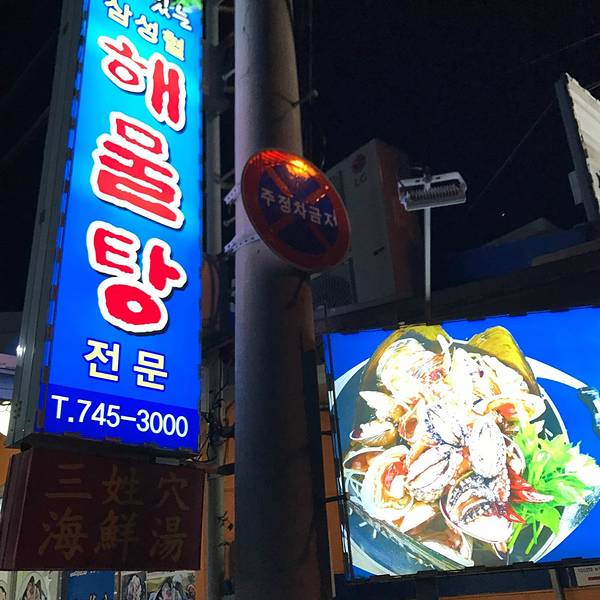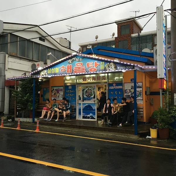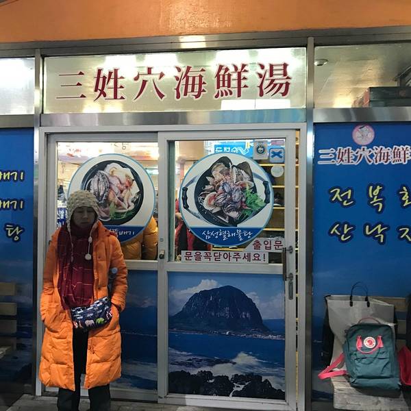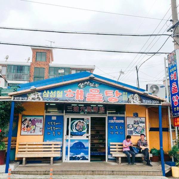 三姓穴海鲜汤,是济州岛的一家老店,来济州岛之前不止一个朋友推荐过。于是这次借着机会,也打算来尝尝鲜。济州岛不大,而这家店位于距离机场不太远的地方,很多人会在回国之前来此品尝一番。三姓穴海鲜汤的具体...三姓穴海鲜汤,是济州岛的一家老店,来济州岛之前不止一个朋友推荐过。于是这次借着机会,也打算来尝尝鲜。济州岛不大,而这家店位于距离机场不太远的地方,很多人会在回国之前来此品尝一番。三姓穴海鲜汤的具体位置并不是很清楚,只是知道大概在济州特别自治道厅南侧,好在有google地图全程帮助导航。由于是晚上打算去吃,车也不算好打。看了看导航大约2km左右的步行距离,于是任性的打算步行。抵达店里时,门口已经有了不少的客人在排位。店主会询问用餐人数,然后帮忙排个号给客人,之后就坐在店门口的长凳子上等待便是。好在等待的时间并不太长,大约20分钟后,我们被告知可以进入用餐。进店之后,需要把鞋子脱下来放置在店内的鞋柜里面,然后方可前往座位。为了保证食材新鲜以及店内人流量可控,这家海鲜汤晚上8店以后就不能点餐了。海鲜锅从小、中、大、特大份均有提供,价位依次从50000韩元上升至80000韩元,一个档次增加10000。除此之外还有鲍鱼砂锅、海鲜砂锅、鲍鱼粥等供客人选择,价格为10000-15000不等,当然还有米饭可以选择,1000韩元一份。小份的海鲜锅足够两个人吃,再加上一份鲍鱼粥便基本上可以酒足饭饱了,用餐前会端上一些韩式的泡菜等清爽小菜。这里的海鲜以新鲜闻名。端上桌的时候,犹如章鱼等一些海鲜还在不停地扭动,接着便有服务人员过来嚓嚓嚓的几剪刀,顿时开始老实了。随着锅内的汤汁逐渐沸腾,海鲜锅慢慢恢复了平静,接着便是飘香的盛宴。饭后结账,共计消费了小份海鲜锅,一份鲍鱼粥和若干饮料,两个人合计7万韩元(折合人民币500左右),吃得很饱。