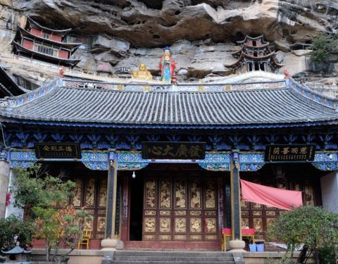 宝相寺始建于元代,位于一堵高耸险峻的大石崖上,依山而建,下层是大殿,二层为寺观,凿石抬梁,被称...宝相寺始建于元代,位于一堵高耸险峻的大石崖上,依山而建,下层是大殿,二层为寺观,凿石抬梁,被称为“云南的悬空寺”。从宝相寺继续步行上山,约半小时即可抵达稍显落败的金顶寺。