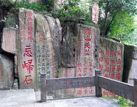 是一个人文,风景俱佳之处.对书法爱好者来说,可以看上几个小时鼓山的摩崖石刻本来就多,而灵源洞,喝水岩一带更为集中,几乎汇集了鼓山最著名的一批摩崖石刻.朱熹的"寿"字,蔡襄的"忘归石"等等.是一个人文,风景俱佳之处.对书法爱好者来说,可以看上几个小时.