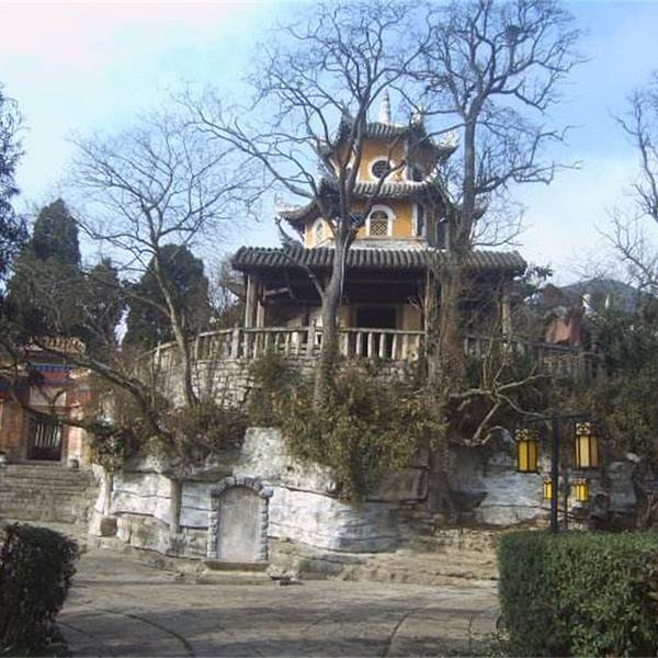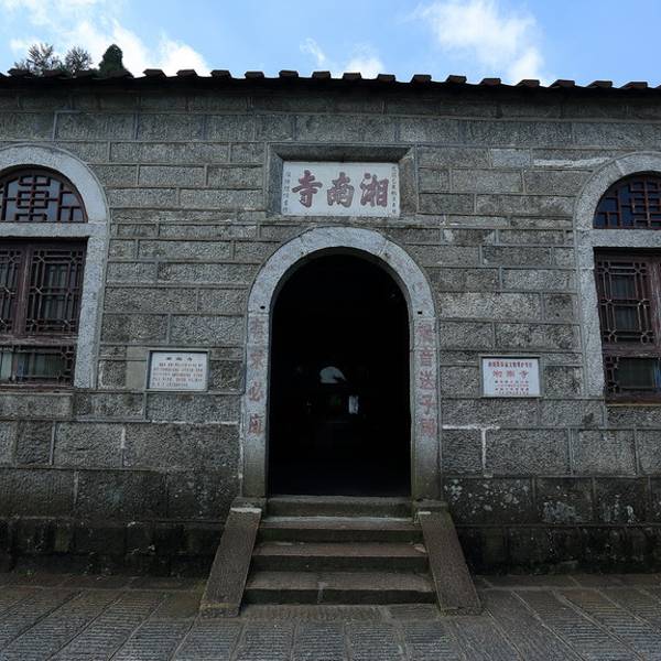 曾筑室南岳隐居读书,德宗时官至宰相,封邺侯。现存寺院为石墙铁瓦,是1935年该寺住持醒悟重建半山亭位于南岳镇至祝融峰之间。上下各为十里。这段路上庙宇众多。
