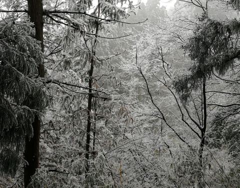松针无一例外都被包裹了薄冰,像是穿了一层高贵的细纱,美丽而通透,性感而不失高雅!