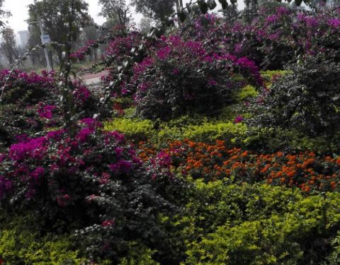 小巧玲珑,花美树秀。登机便捷,山景映衬,让人流连忘返