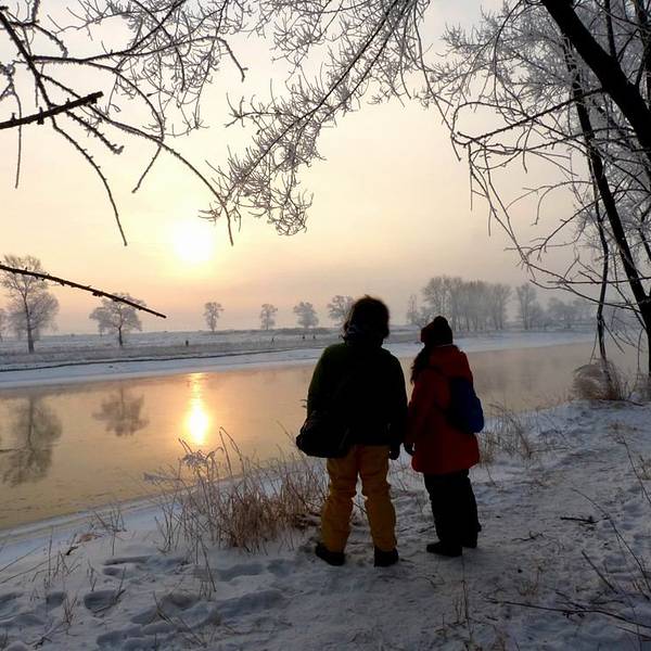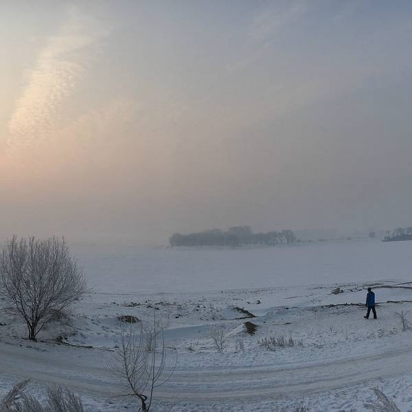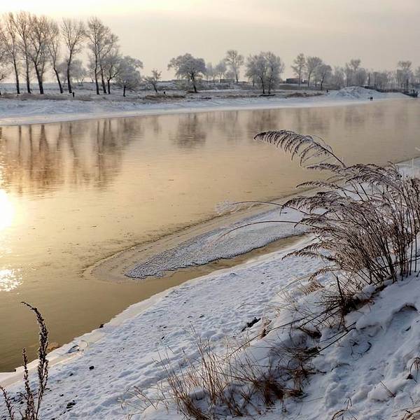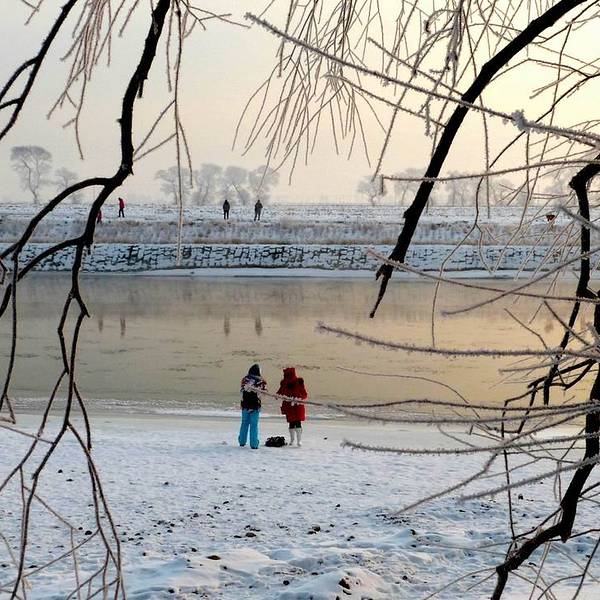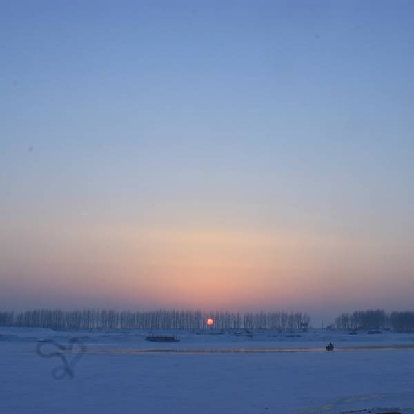当天雾凇一般,在游玩以后我们去找客栈住下,稍息修整,就去松花江边赏日落了。