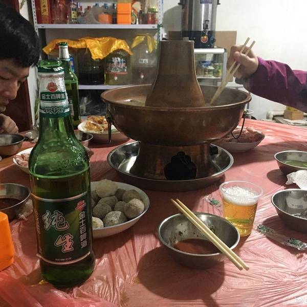 主要是满族铜火锅,在乌拉街所有餐馆几乎都有满族火锅,我们找了一家当地人推荐的满族火锅,是套餐的形式,198元的套餐,大约有八种菜品,有鸡肉、鱼肉、牛肉、酸菜、粉条等等,味道偏清淡,三个人足够了。