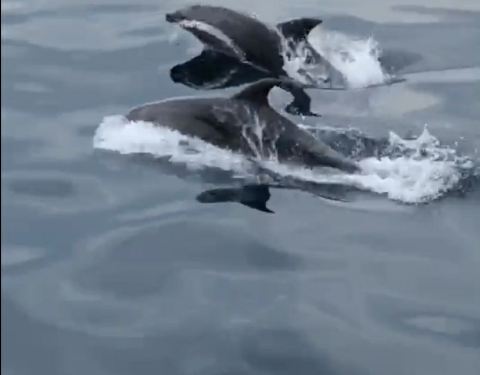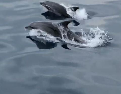 🐳🐬🐋龟山岛有17种鲸鱼和海豚!看到海豚心都要萌化了啦!🤗海豚伴随着我们的轮船前进,看到海豚会带来幸运,此刻幸福感爆棚😚