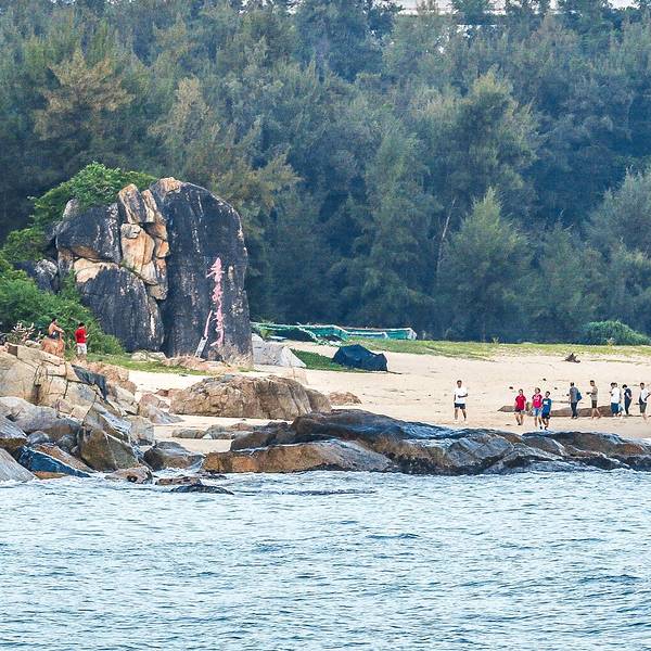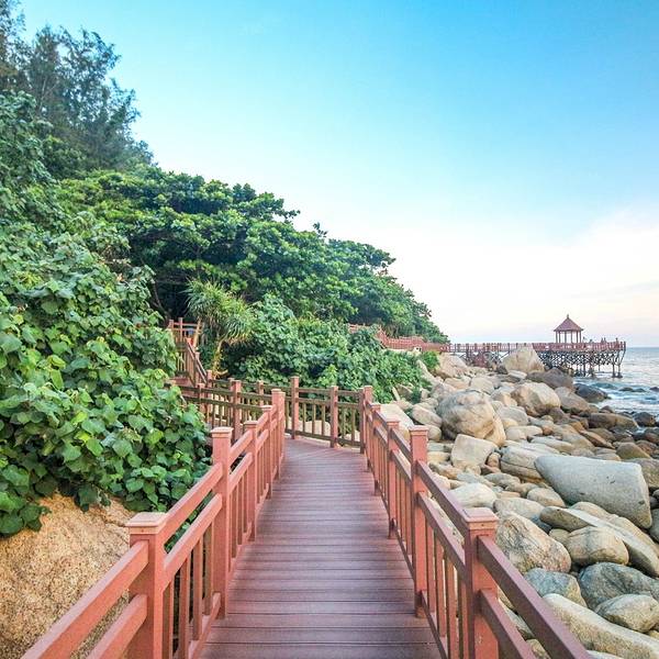 香水湾位于海南岛南北气候分界岭——牛岭脚下,陵水县东部。 这里因香水岭流来的泉水注入海湾而得名,与万宁市的石梅湾相接,与分界洲岛遥遥相望。如今这里依然保持着原生态的海滨风光,踏入香水湾,首先映入眼帘的是青翠的椰林,再就是漫无尽头的银色沙滩,低处若毯,高处成丘。香水湾较为僻静,沿着海岸线走着,浪花声声声入耳。