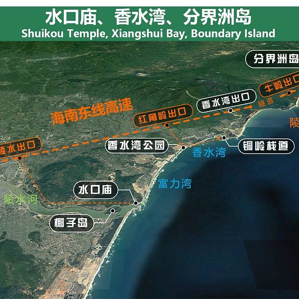 从海口出发,沿海南东线高速公路,在182公里处就是香水湾口。