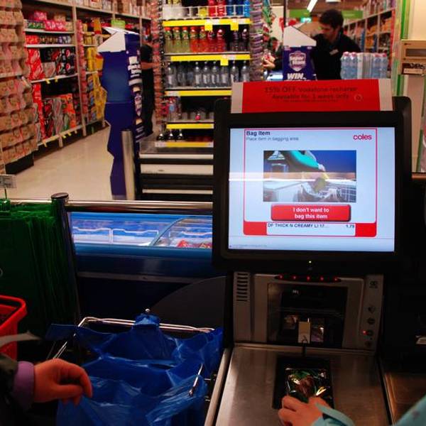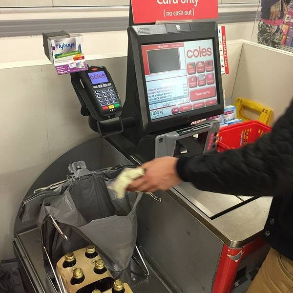距离接孙小肉还有一段时间,再我强烈要求之下山哥老妖就带着我到超市去采购零食。 coles这家超市好像随处可见,规模都还挺大,品类齐全。 恕我孤陋寡闻,人生还是第一次见到自助结账机,革命靠自觉和科技相结合,但是可以预见如果在国内肯定上有政策下有对策…