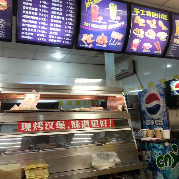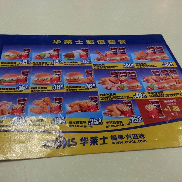 由于住在凤翔北路那一带,晚上逛街的时候无意中发现了这家华莱士,对于华莱士,本人还是觉得不错的,因为华莱士的价格比麦当劳和肯德基要便宜很多,而且味道也不错啦!这家华莱士(容山路店)非常好找,交通也非常便利,乘坐322路、323路、327路、921路等公交到宏骏广场公交站,下车后往南走大约30米后,转左进入容山路,再步行大约60米,华莱士就在你的左手边了。这家华莱士的优惠活动很多,特别是周三,每逢周三可以用10元买1个鸡肉卷和1个汉堡包,非常划算。就算不是周三,也有11元的超值套餐和15元起的超值套餐。反正这里人均15-20元就能吃到很饱!餐厅虽然不大,大约只能容纳30个顾客,但是整个店铺干净卫生。服务员的态度很好,味道也不错,唯一不足就是餐点等了差不多10分钟才上齐,希望能够改进。总体上还是很不错的一家餐厅!