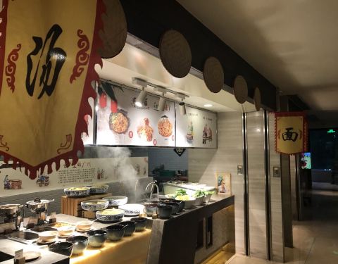 在环市路上,公司的聚餐选择这里,负责开门的工作人员没有笑容。进去后上二楼就到了就餐区。餐厅门口有两个老外负责收餐票。可能是因为中午的怨我,食物的选择非常少,连像样的海鲜都没有,最好的还要就是冰虾。...在环市路上,公司的聚餐选择这里,负责开门的工作人员没有笑容。进去后上二楼就到了就餐区。餐厅门口有两个老外负责收餐票。可能是因为中午的怨我,食物的选择非常少,连像样的海鲜都没有,最好的还要就是冰虾。炒面是冰冷的,整个自助餐最多的就是菜。在甜品区有个很受欢迎的新西兰酸奶雪糕,而且很快就没有。这里的叉烧一点都不好吃,没有味道的。这里没有鲜榨果汁,可能是中午的原因。有二拉罐汽水。而且选择非常少。还有蔬果水。总体来说这里中午餐可选食物非常,好,而且一点都不值那个价钱。