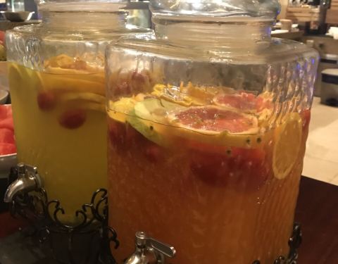 其实当时挺憧憬的,风景很棒。但是到了这里感觉一般般,牛排比较小。有生蚝,生蚝可能吃不惯,是直接吃没有蒜蓉的。最后感觉就是苏打水比较好喝……哈哈,不过如果在广州平时的自助餐来说还可以了的,该有的都有...