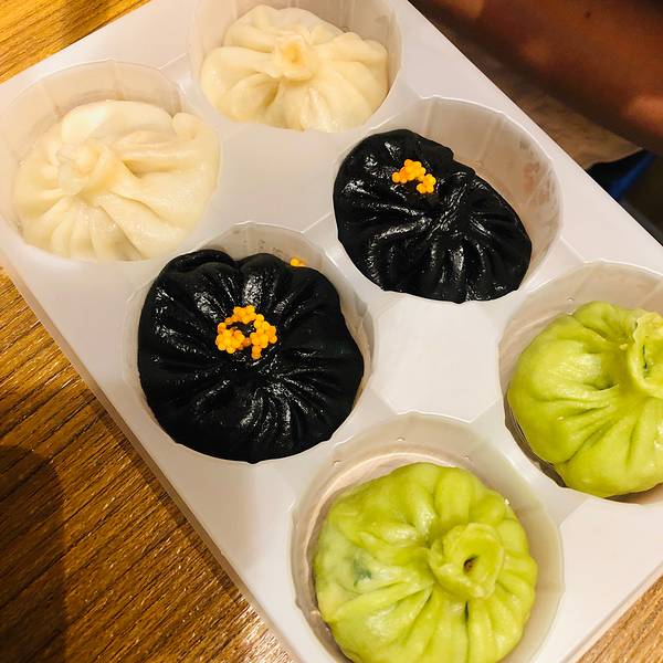 又来了汉唐面庄,配了几个菜~汉唐面庄~又是小六汤包,三色汤包~三个味道^-^