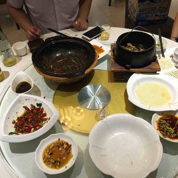 正宗的湖南菜,一共5个人,点了一个粉丝煲,三个凉菜,一个什么鸡,一个干煸肥肠,一个土豆丝,还有...