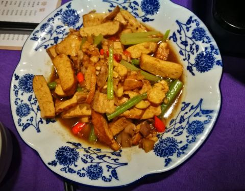 那里的豆制品很好,点了养生黑豆腐、温汤豆腐、柴火香干,特别是黑豆腐又嫩又细滑,吃口很好