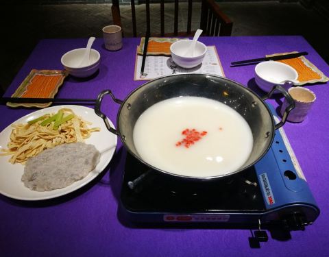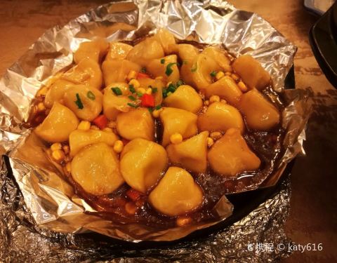 位于明月山天沐温泉度假村内的真味堂,应该算是宜春温汤镇上最好的餐厅了,以当地特色野味为主,菜的品种丰富较多,而且环境也好,古色古香,尤其是白天天气好,坐在二楼外面,看着风景,吃着特色菜,暖暖的太阳照在身上很舒服!那里的豆制品很好,点了养生黑豆腐、温汤豆腐、柴火香干,特别是黑豆腐又嫩又细滑,吃口很好!明月小河鱼是特色菜,点的人很多,煎炸的香脆,入口即化!红烧野兔也很香,时鲜货冬笋炒腊肉很过饭,铁板芋饺糯而软,特色菜总厨手打虾滑,更是份量足且味道好!