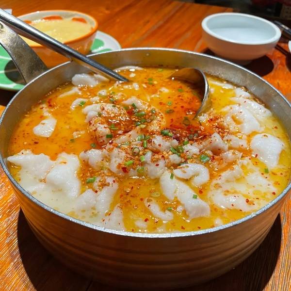 推荐招牌大盘鱼,其实就是酸菜鱼,鱼肉质不错,鲜嫩又有弹性,锅底粉条和酸萝卜很入味。打卡三亚网红店