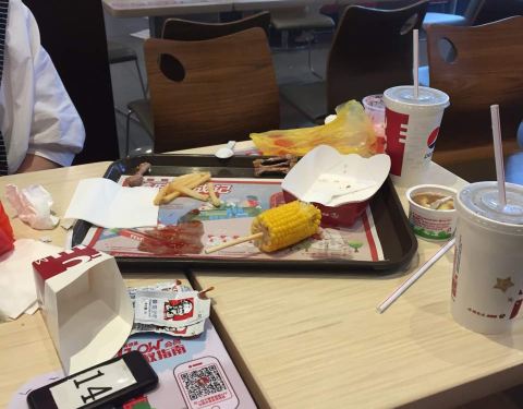 ...儿子去点餐他排着队的前面有人插队(不知道是不是收银员的熟人)我孩子点餐收银员恶狠狠的吼道:排队