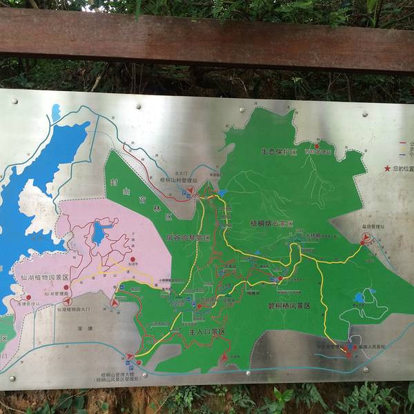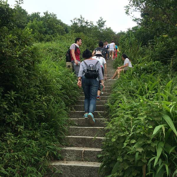 金骆驼 风景感觉很美,云雾起起落落的很凉快有仙境的感觉。山顶有多个山峰,站在不同山峰看不同的风景不同的美感上山的时候选择的是公路,下山的换从泰山涧,不一样的路,欣赏不一样的风景,感受不一样的心情!公交车有211路开往梧桐山,建议乘坐地铁到太安站下车,出来后往东湖方向走,大概8分钟到一个T字型路口,往右走就是...上山的时候选择的是公路,下山的换从泰山涧,不一样的路,欣赏不一样的风景,感受不一样的心情!公交车有211路开往梧桐山,建议乘坐地铁到太安站下车,出来后往东湖方向走,大概8分钟到一个T字型路口,往右走就是水库站,但是要到对面去坐车往梧桐山,从这里去坐公交去梧桐山比较近,大概20分钟车程;下山出来的时候,还发现另外一辆小黄巴士从梧桐山开往黄贝岭地铁站,黄贝岭相对来说距离要远一点。当然如果有私家车的朋友,可以自己开车去。梧桐山下有个梧桐山社区,有很多的小旅馆,周末来这里休闲度假住一晚,第二天爬山看日出日路应该也很好,不过要选择天气好的时候。梧桐山大门景区是免费开放景区的游览图,黄色是人行爬山路,红色是盘山公路。从梧桐山可以通往仙湖,因为从仙湖正门进去的需要购买20元/人的门票,有部分朋友时间充足的会选择从这边一面游玩一面往仙湖去,这样就可以免费去仙湖游玩了。泰山涧爬山路台阶很多。公路上的山景,树木非常茂盛。山里空气非常好,爬山的过程中心情很愉悦,所以感觉不到累。倚天招凤亭,当时一心往大梧桐山主峰去的,就没去这个亭。一路上有指示牌。周末结伴去爬山的人很多,有朋友出行的,也有公司组织的。半山腰休息区有小商店卖饮料水等。这里就是好汉坡的登山起点了,一路上都是台阶,很陡,下雨天路滑禁止爬山。登陆一半,有个休息的地方,可以俯瞰风景。上山雾气很大,拍照看不清对面的风景,对面就是香港。爬山的路在山顶脊梁上,两边都是峭壁,看起来很险。爬山的人很多从上往下看感觉很陡峭,很有挑战性,烟雾缭绕的感觉很也好。终于到达山顶,人还是很多,卖水卖小吃的也很多。天池没有想象中那么大,也不知道为什么水很黑,名过其实了。都要和鹏城第一峰合影!下山的另一个方向的路山路小径两边的草丛很茂密,走的人很少有种曲径通幽处的感觉。风景感觉很美,云雾起起落落的很凉快有仙境的感觉。山顶有多个山峰,站在不同山峰看不同的风景不同的美感。下山选择走泰山涧,相对公路来说距离要近一点,但比较陡峭,一路上都是台阶,有指示牌,说明到达起点的距离。台阶很长之字形台阶好汉坡服务中心销售的饮料喝和青瓜西瓜,泡在山里流出来的泉水里水很冰凉饮料喝瓜也就冰凉了。泰山涧的人比较少,旁边与溪流作伴,一路聆听水流的潺潺声,感觉特别惬意。越往下汇聚的水流越多水声越大。小瀑布山路很陡峭小瀑布泰山涧吊桥快到山脚路平缓了回望大山深处凤山吊桥来游玩的人很多。水库。 展开