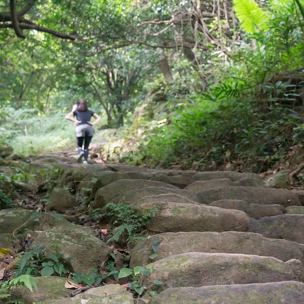 下山一路向西,到分叉路口选择了中间路,地图看似近不绕路,实际还有一截路需要上行然后才一路下坡陡梯,掌握下山的技巧,一步三登大步跨进,脚踏实地,看清脚下,稳中求进,量力而行。步子越小消耗的越快,借助自身存在的惯性,更加省力。(爬山可能是旅游中消费最低了)