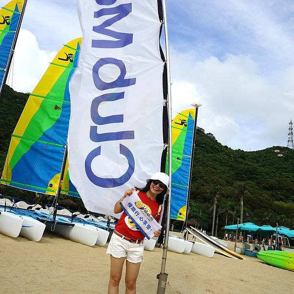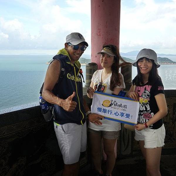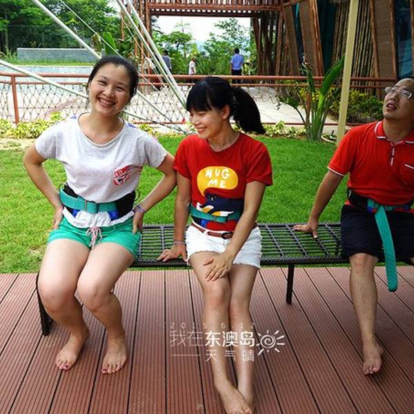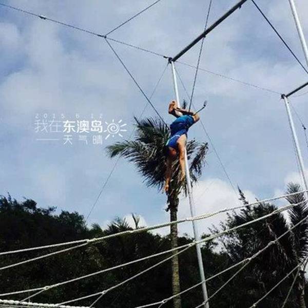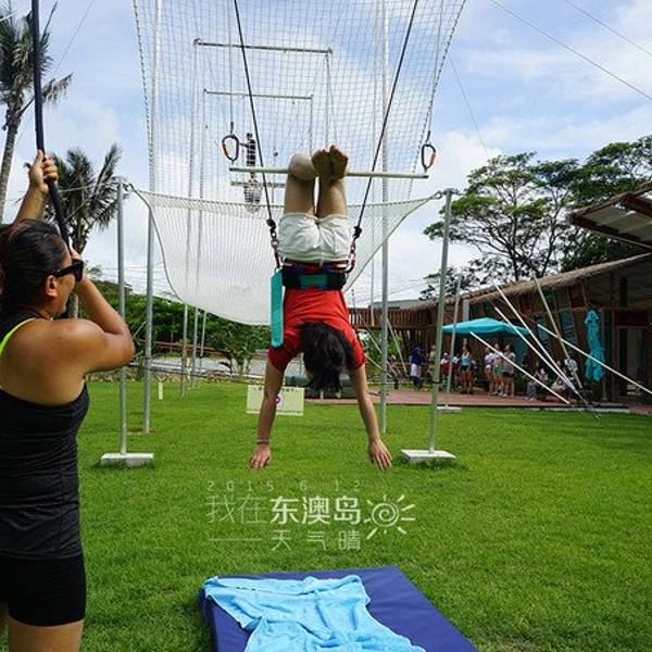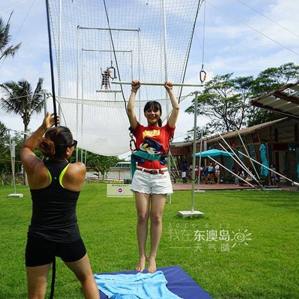 MM们不要畏惧哦,当你体验了一次后,你会爱上它的~依旧是试跳前的准备练习模拟试跳~在一旁等待上场的人们,哈哈,被G.O帮忙偷拍了此次东澳岛幸运,很有趣,既然会在徒步时候遇见我在网上预订的旅行社蜗蜗游。他们的小蜗牛刚好出全陪带领一波他们的客人入住ClubMed东澳岛度假村,认识了一位小蜗牛娟娟,很可爱~还让我拿他们的小旗子在ClubMed旗子下合影留念~