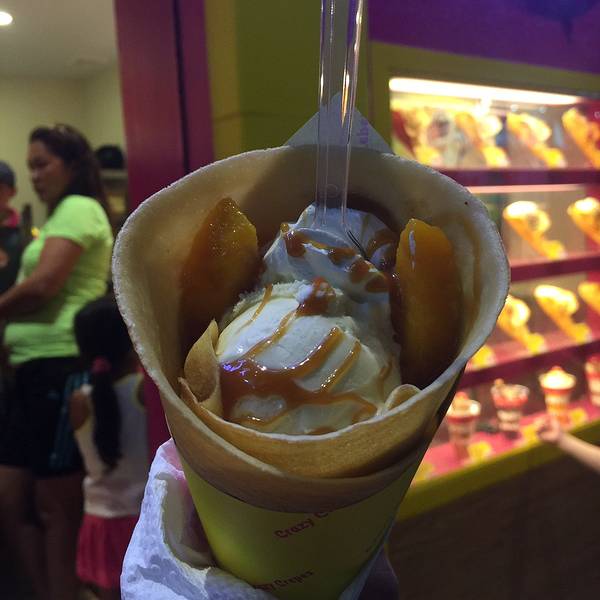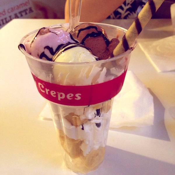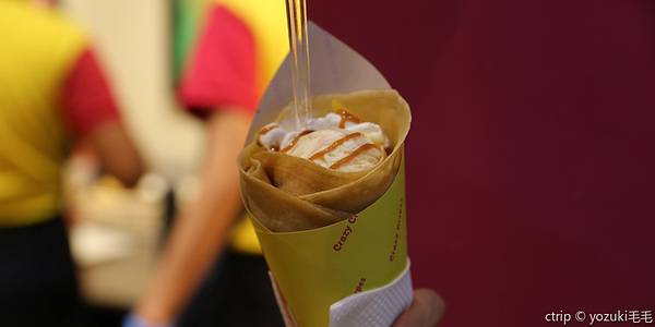 Crazy Crepes是当地一家连锁冰激凌甜品店,主要出售各种各样的可丽饼和冰激凌。甜品店的门面十分醒目,装修得非常可爱,还没吃就已经被吸引了。 冰激凌量很大,满满一杯,大颗粒的水果,花生,冰激凌,很有当地特色风味。可丽饼饼皮软软香香的,里面料也很足,冰激凌,奶油,果酱,威化,制作过程非常精细,味道一层一层下去,吃得人心里美滋滋的。
