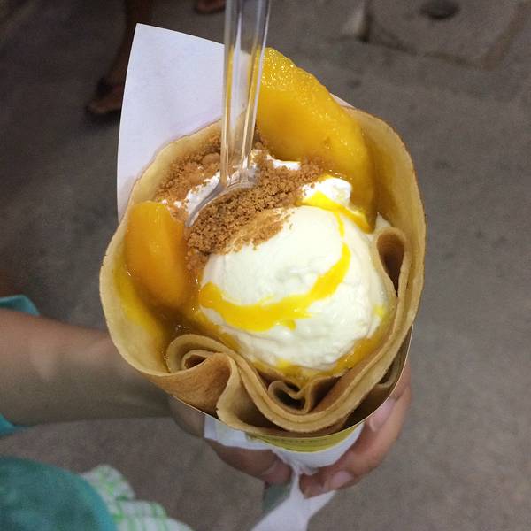 这是攻略里提到的薄饼冰激凌店,口味众多,我们买的芒果口味的125P吧口味不错