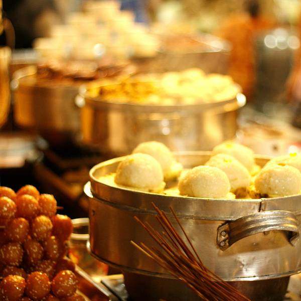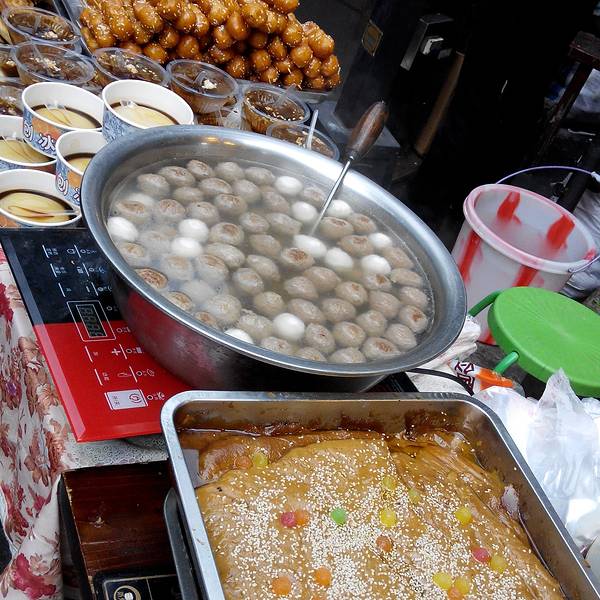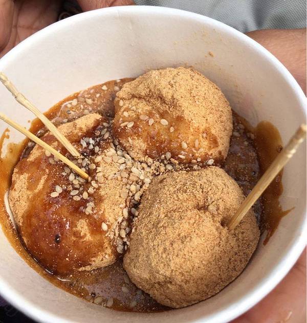 三大炮,成都著名小吃,由糯米制成,是一种类似驴打滚的小甜食。小糯米丸子上沾满香香的黄色粉末,再用竹签串成一串,淋上红糖汁就可食用了