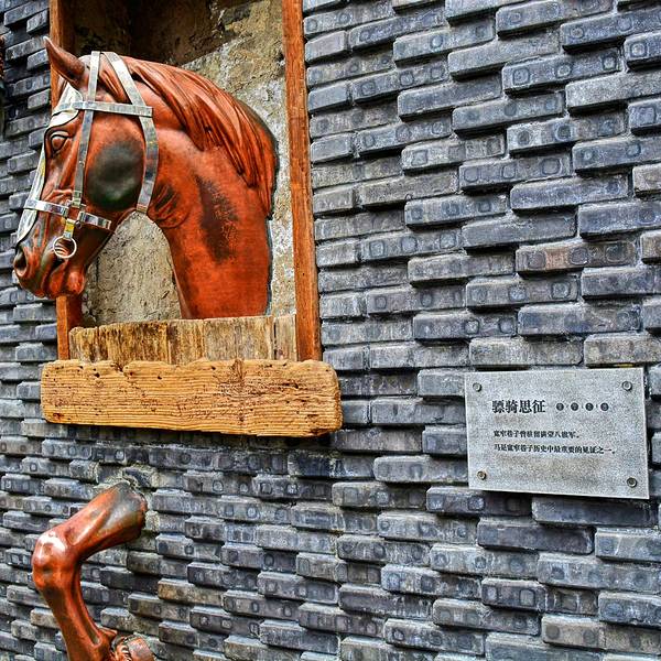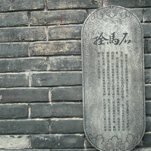 拴马石位于窄巷子32号门头的老墙上,离地约1.2米。已风化斑驳,是宽窄巷子仅存的三个拴马石之一。百年前这里曾是北方满蒙八旗及家属的居住地,有骑马出行的习惯。拴马石是北方文化在川西的符号性表现。